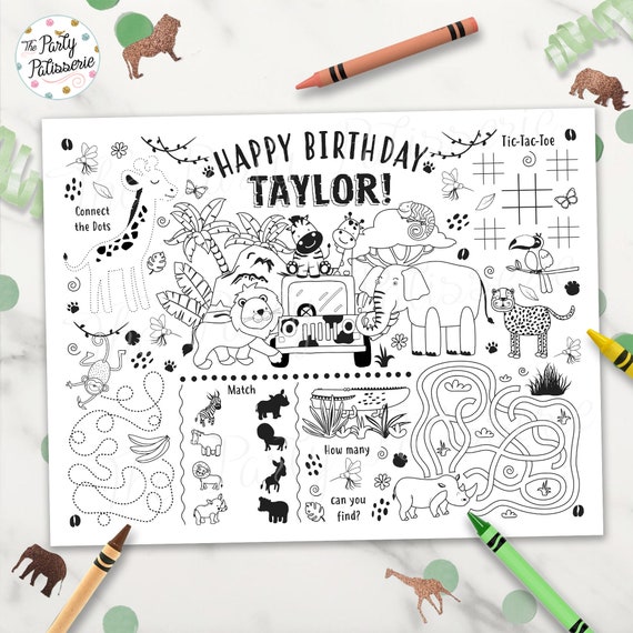 Safari Coloring Placemat Jungle Placemat Personalized Etsy