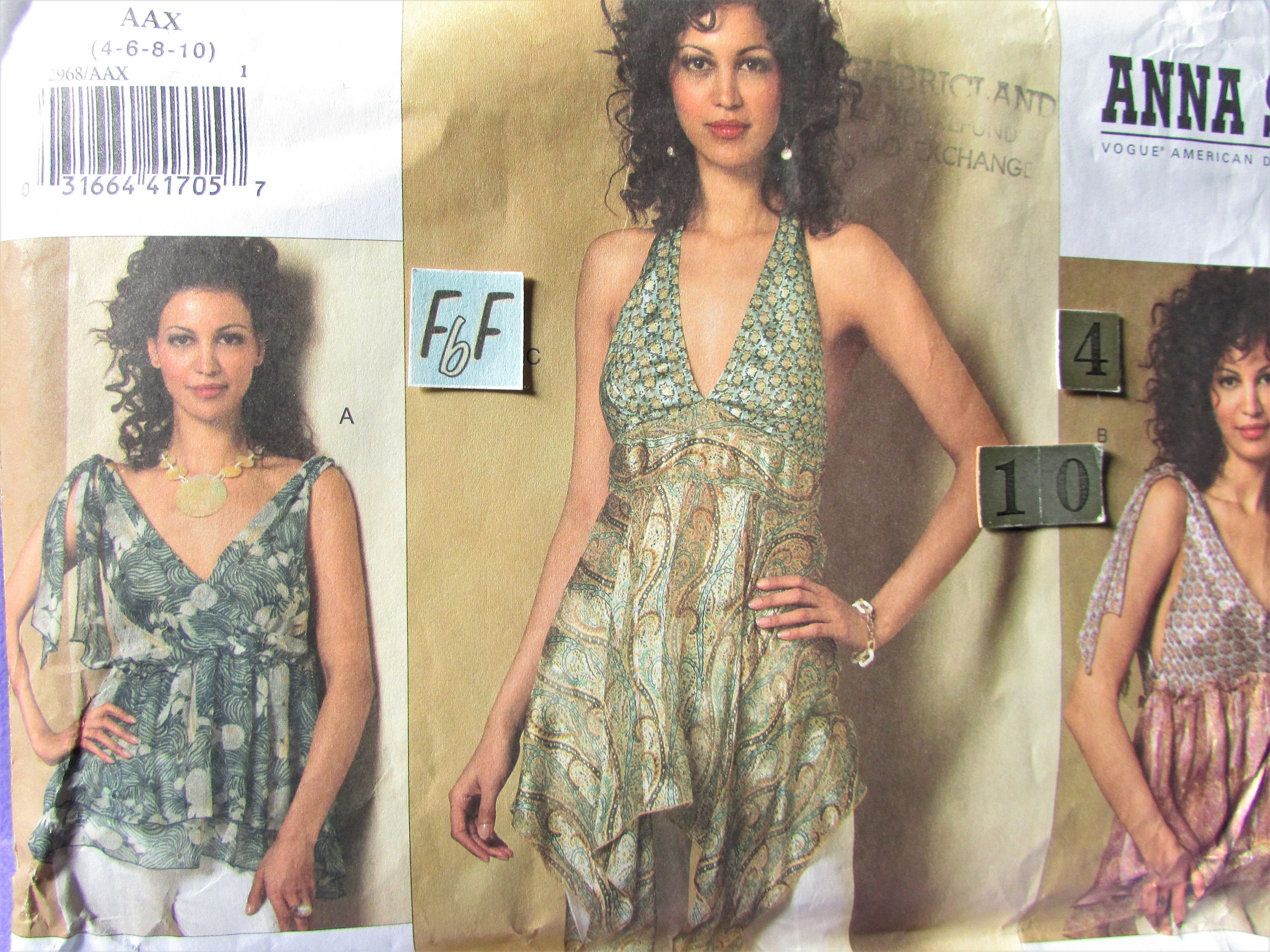 Vogue Pattern 2850 Anna Sui Designer Blouse Tops Halter Sleeveless Wrap Top Tank Top Sizes 12 14 16 Sewing Pattern Heaven
